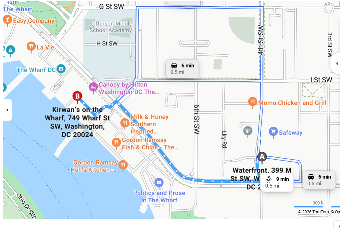 - Turn right onto M St SW - 0.1 mi, about 2 min
